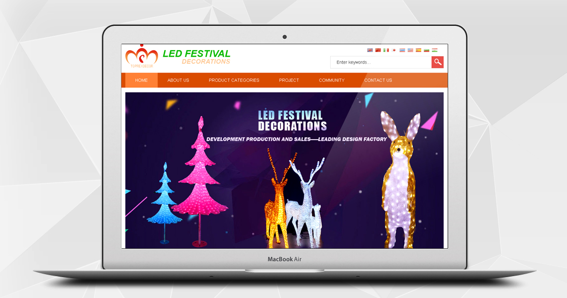 1. Christmas Decoration:Include LED Acrylic Sculptures, LED Christmas Trees, LED Motif Lights, Large Outdoor Lighting Theme, LED Fabric Arts, and various of innovative Xmas decorations.